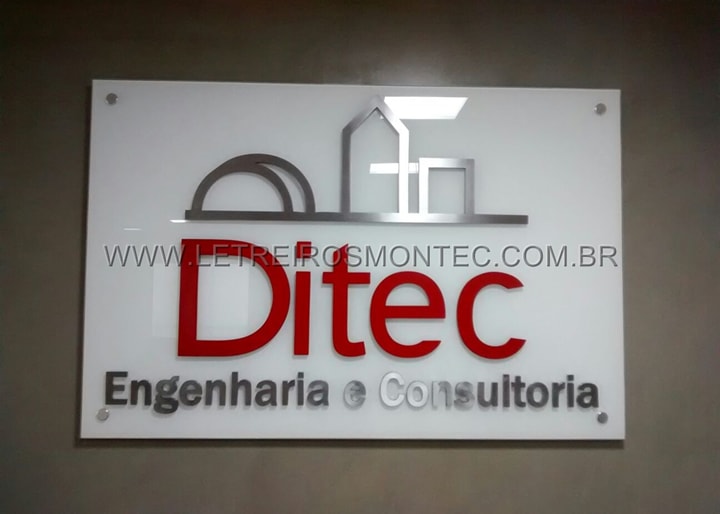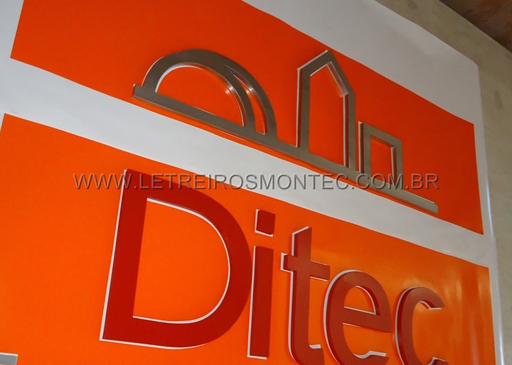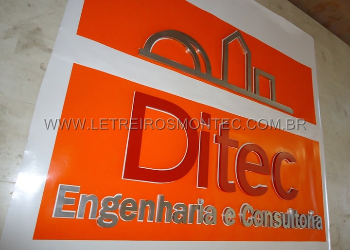 Produção do letreiro do escritório de Engenharia e Consultoria da Ditec, foi produzido o letreiro em aço inox com acabamento escovado, e as letras que correspondem ao nome da empresa Ditec foram confeccionadas com o material de aço galvanizado com pintura na cor vermelha conforme o visual da empresa e fixado na parede, ganhando um enorme destaque no ambiente. Para mais detalhes , conheça os demais letreiros que produzimos e solicite o seu orçamento conosco.