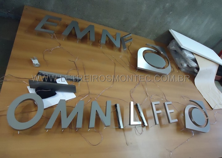 Letreiro para loja de suplementos alimentares iluminado por leds. O letreiro com leds da loja foi confeccionado em aço inox escovado com fiação embutida para a iluminação das lâmpadas de leds. A instalação foi realizada em ambiente interno fixado na parede da loja Omnilife. A Omnilife é uma loja que atua com suplementos para a saúde, e nós da Letreiros Montec produzimos o letreiro para a loja com sede em São Paulo - SP. Confira e conheça mais a nossa linha de letreiros que produzimos e solicite o seu orçamento.