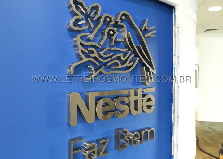 Produzimos o letreiro para a indústria Nestlé, fabricado com material nobre de aço inoxidável escovado e logotipo nos padrões conforme a sua identidade visual. A indústria Nestlé S.A é uma empresa multinacional alimentícia com sede na Suíça. A Letreiros Montec fabricou o letreiro da Nestlé com requinte e sofisticação ganhando um enorme destaque. Conheça também o processo de fabricação do letreiro da nestlé em nosso vídeo. Para mais detalhes consulte os demais letreiros de nossas variedades e solicite o seu orçamento. Confira!