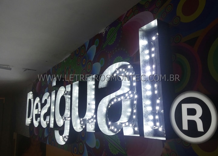 Fabricamos o letreiro luminoso para a rede de lojas de roupas Desigual do Shopping, com a parte frontal vazada iluminada através das lâmpadas de leds e instalado na fachada da loja. A Desigual é uma rede de lojas de roupas em Shoppings que atua em mais de 100 países com sede em Barcelona na Espanha, no segmento de moda feminina. A Letreiros Montec produz os letreiros para diversas redes de lojas em Shoppings, confira e conheça mais a nossa linha de letreiros que disponibilizamos e solicite o seu orçamento.