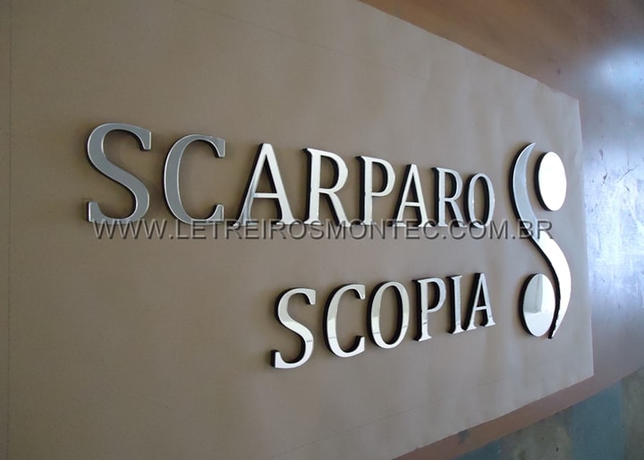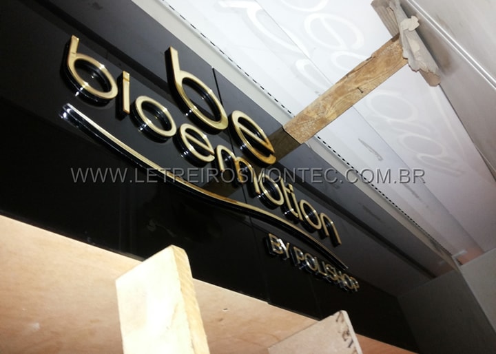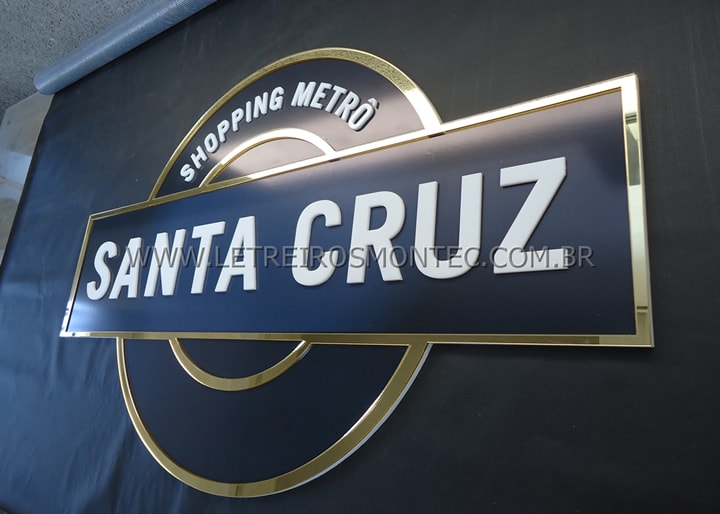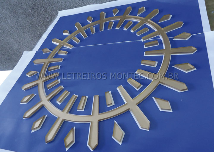 Produzimos o letreiro com o corte a laser de acrílico espelhado e dourado, onde só a frente do acrílico recebe o tratamento com perfeição no acabamento. O corte é utilizado em letreiro que possuí letras pequenas e logotipos complexos.